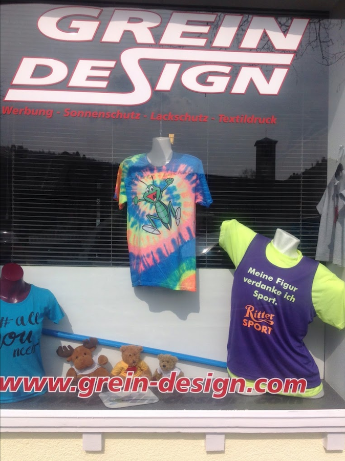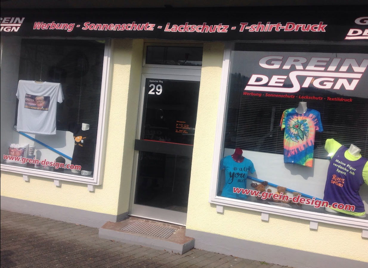 Grein Design ist ein Fachbetrieb für Beschriftungen, Textildruck und Folien aller Art. Mit unseren Folien bieten wir Schutz und machen für Sie individuelle und an Ihr Unternehmen angepasste Werbung, die Ihnen eine hohe Aufmerksamkeit verspricht.